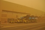 Die Sicht ist extrem eingeschränkt und beschränkt sich auf knapp 50 Meter. Ein besonderes Ereignis ist es auf alle Fälle, denn keiner der hier schon länger als 7 Jahre lebt, hat einen Sandsturm diesen Ausmaßes jemals erlebt. Alles ist gelb, alles versandet und es ist ungewöhnlich Still, es ist fast geräuschlos und inzwischen auch Windstill. Das gesamte Tagesgeschehen wird in die Feuerwache verlegt, größere Aktivitäten außerhalb des Gebäudes werden abgesagt. Es wird generell versucht sich dem feinen Staub nicht auszusetzen und das ganze auszusitzen. Für mich Europäer eine ganz neue Erfahrung. Etwas, was mir keiner mehr nehmen kann. 😛