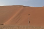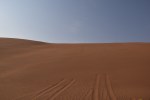 Zwischen den Sanddünenfeldern (nicht weit der Saudi arabischen Grenze entfernt) angekommen, erhob sich aus dem nichts diese gewaltige einzige Düne. Kein Wunder, dass ein Herr J.J. Abrahams in dieser Wüste einen Star Wars VII abgedreht hat! Die Atmosphäre war echt eine Erfahrung wert. Man fühlte sich (Geräusch)isoliert, abgeschnitten von allem & mal wieder winzig klein auf der Welt. Aber keine Sorge, auch da hatte Chris 4G Internetverbindung bis zum abwinken 😉 Also konnte man dort wenigstens nicht an Entzugserscheinungen der sozialen Netzwerke sterben – ich habe eh das Gefühl, dass dieser Aspekt, immer und überall Telefon- & Internetverbindung haben zu müssen, bei den Emiratis ganz hoch im Kurs steht. Wirklich an jeder Ecke und in der tiefsten Wüste stehen überall Funktürme. Am iPhone steht auch 4G an, aber meines Erachtens kommt da nicht das volle potenzial an, so wie ich es von 4G in Deutschland kenne – mal so nebenbei. 🙂