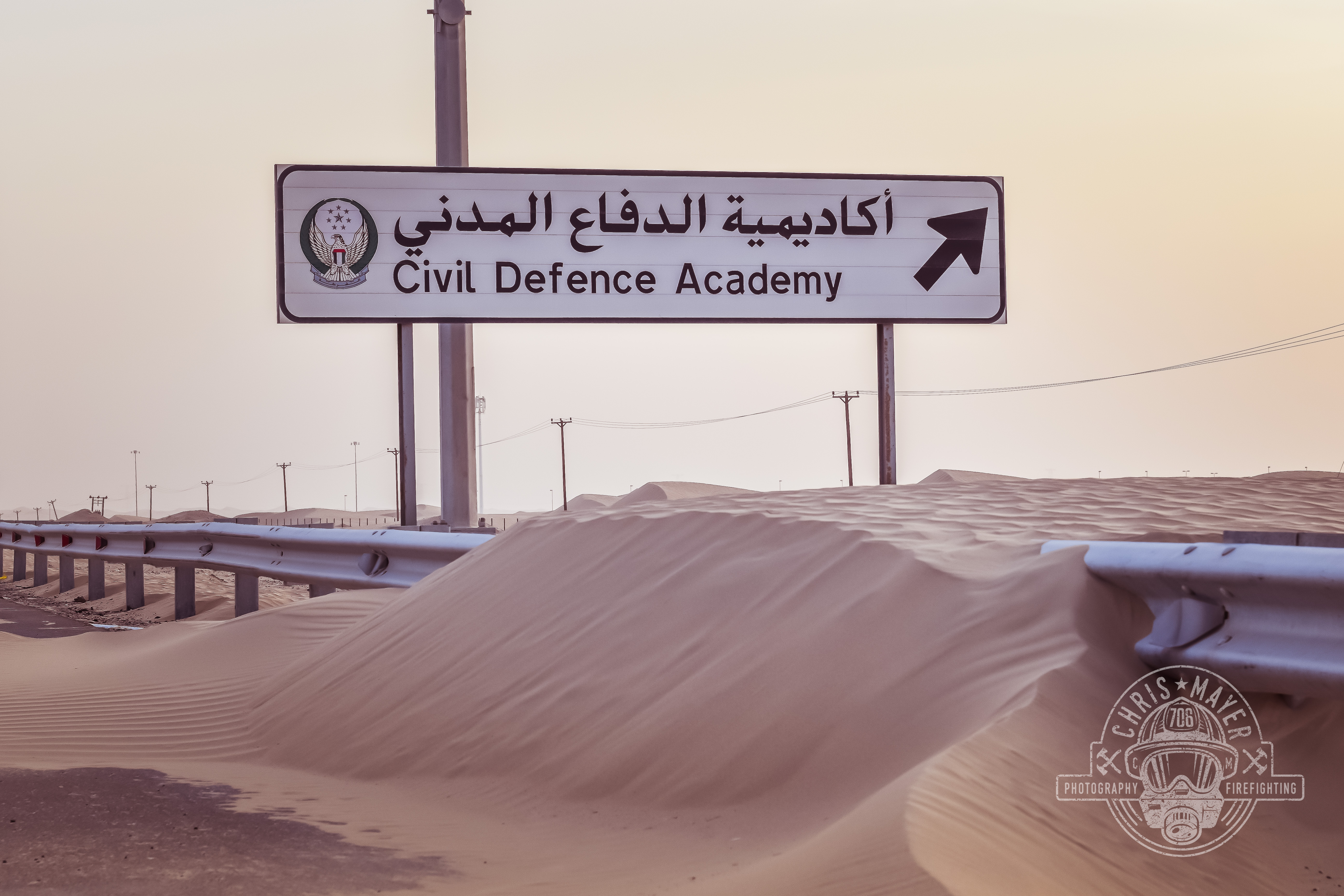 Stichwort: Tunnel- & Schienenbrandbekämpfung – So lautete der Titel des Lehrgangs, den ich gestern mit Erfolg abschließen konnte. 5 Tage ist der letzte Report of Abu Dhabi her und seitdem war ich wieder fleißig! Nachdem ich von Schicht kam, ging es ohne Umwege direkt an die Feuerwehr Akademie der Emirate, ca. 35 Minuten außerhalb von Abu Dhabi mitten im Dünenmeer. Da war ich nun, von Sandbergen umgeben und mitten im nichts, das weitläufige Gelände der Akademie. Modern, am Puls der Zeit orientiert und mit allem ausgestattet, was an Einsatzfällen im Leben der Emiraties eintreten kann. Das fing bei einem gesamten Hochhaus für Trainingszwecke an, ging über Tunnelanlagen bis hin zu einer Maßstabsgetreuen Feuerwache. Generell waren die Anlage und die Gebäude top gepflegt und haben bei mir einen guten Eindruck hinterlassen.
