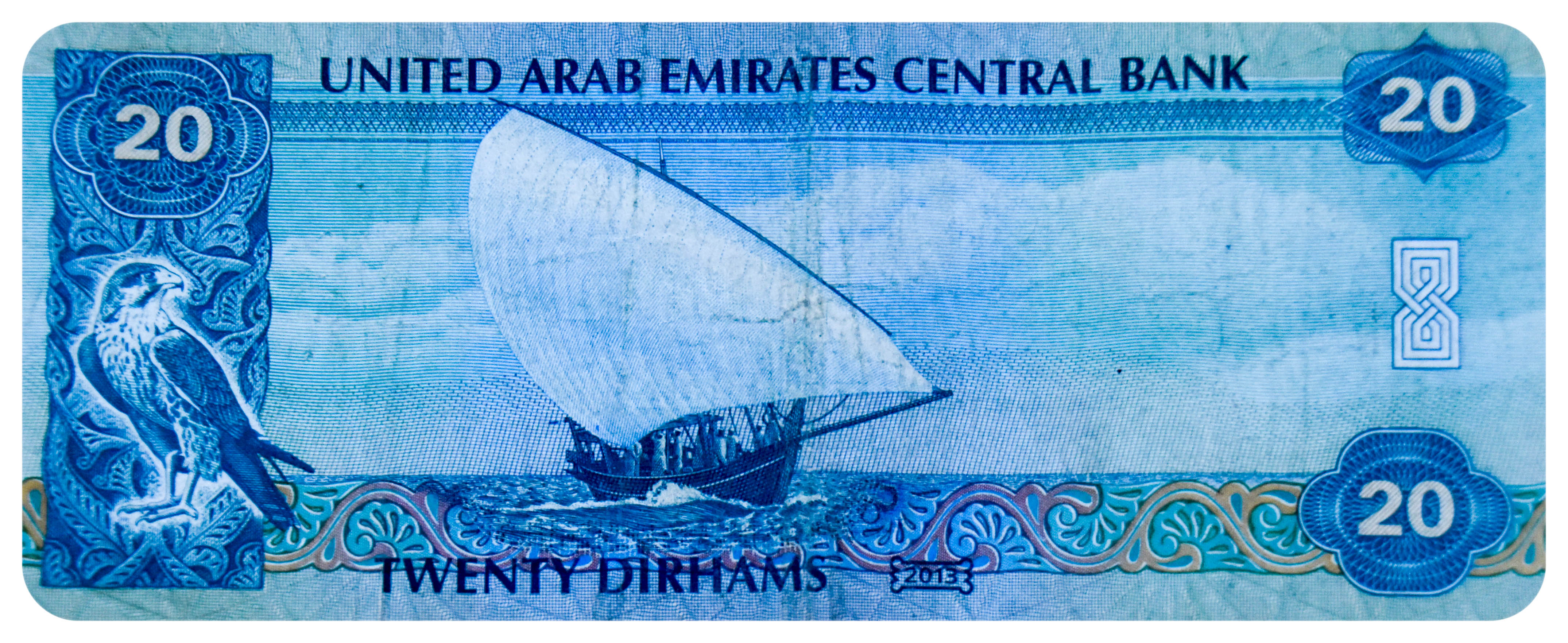 Das ist der 10 Dirham Schein. Ihr könnt euch die Scheine in vergrößerter Ansicht betrachten, wenn ihr sie anklickt.